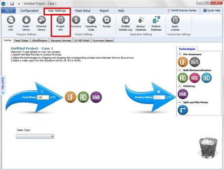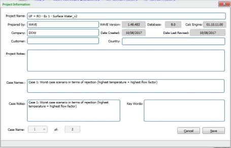 When starting a project in WAVE it is advisable to put in project information including project name, date, description etc. This can be done as follows: