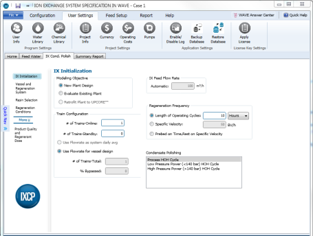 Figure 2: IX Initialization Window. Regeneration Frequency. IX Condensate Polishing