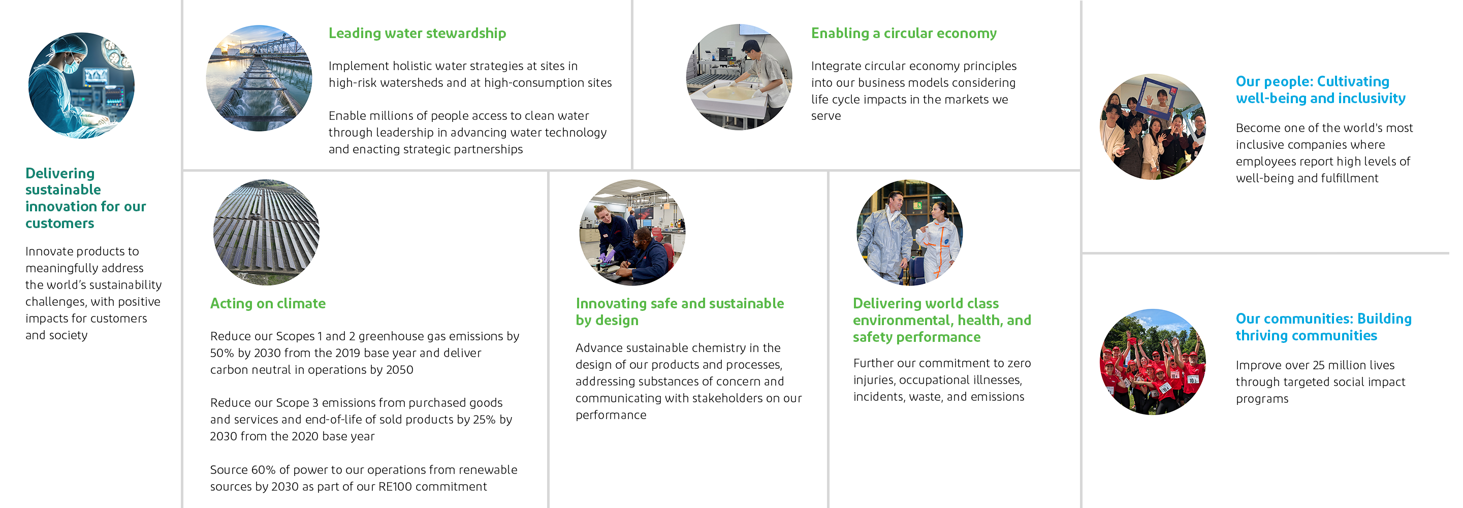 As a premier multi-industrial company, DuPont recognizes that to achieve sustainable value creation we must address societal challenges across our entire value chain. We develop innovations with our diverse customers, operationalize sustainability in our own operations, and advance sustainability in our supply chains. Established in 2019, our sustainability strategy harnesses our deep understanding of science and technology and our close collaboration with stakeholders to create impactful and enduring outcomes.