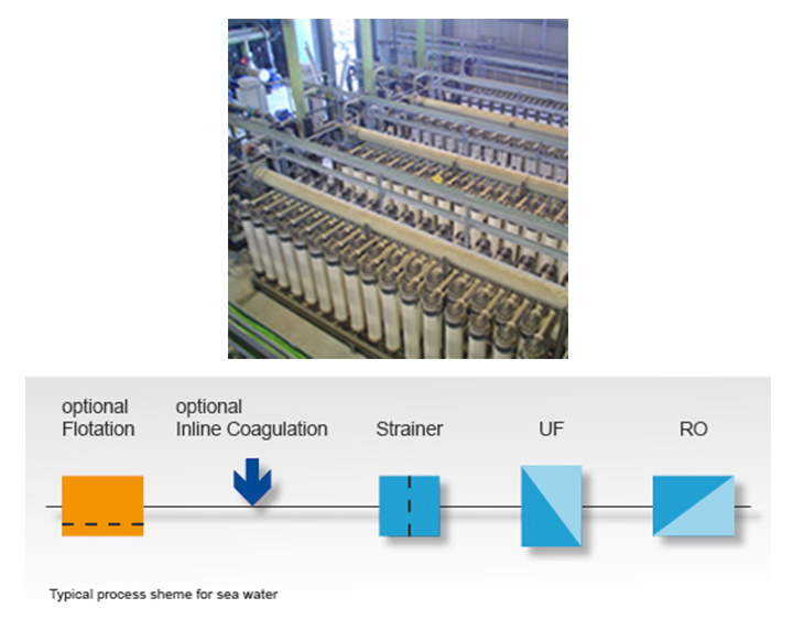 The best alternative for future applications is a combination of ultrafiltration and reverse osmosis. The initial cleaning of the seawater is performed efficiently by ultrafiltration, while the actual desalination of the water is achieved through reverse osmosis.