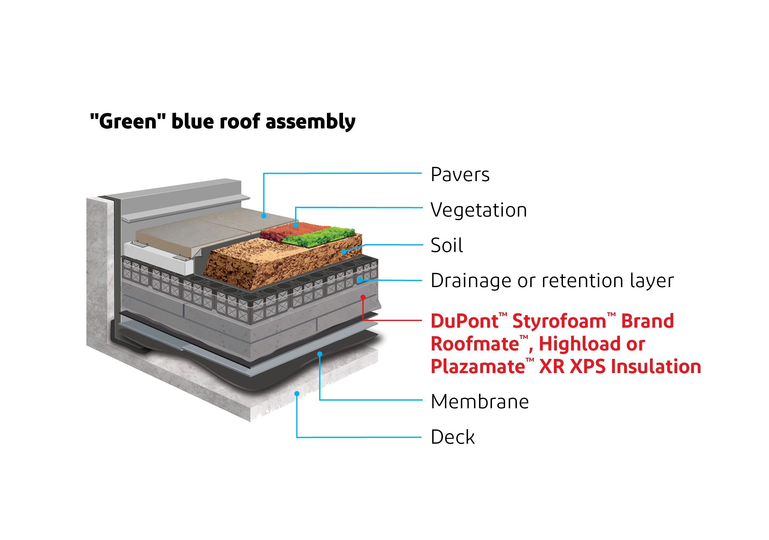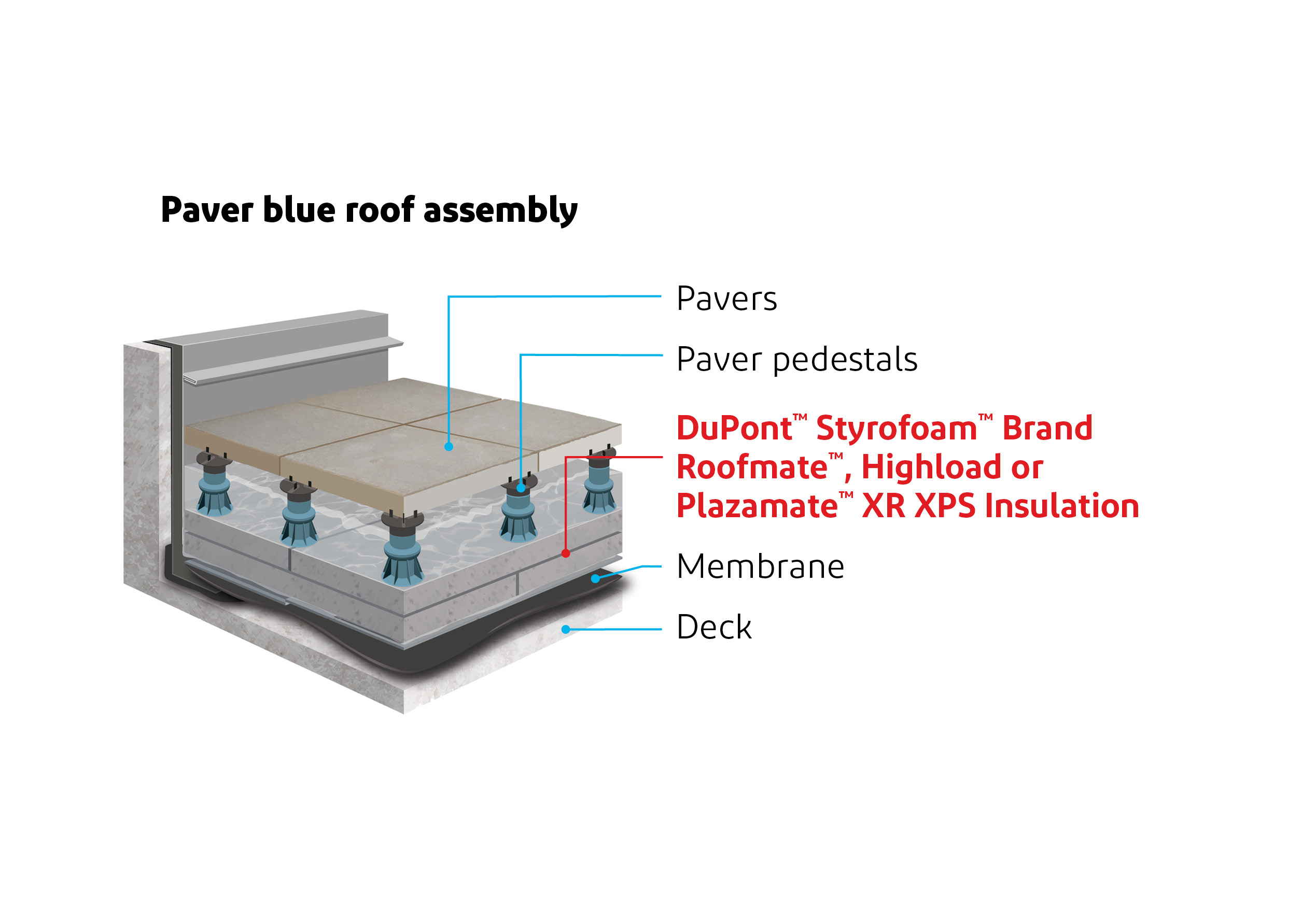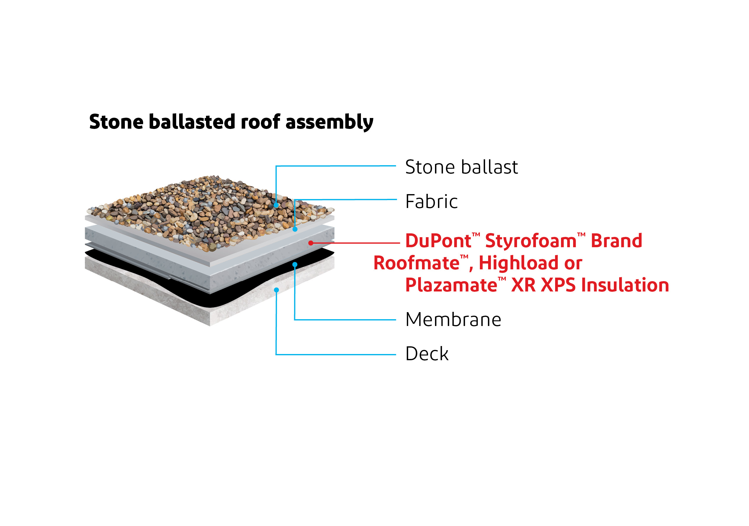 Invented in the late 1960’s, a protected membrane roof system uses DuPont™ Styrofoam™ Brand XPS Insulation to protect the membrane, helping improve the performance and longevity of the entire roof system.