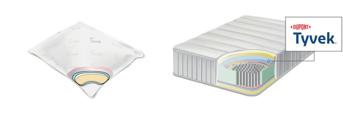 Tyvek® is made of high density polyethylene fibers (HDPE) randomly laid, multidirectionally oriented and bonded together by heat and pressure during manufacture. The result is a remarkably tough, durable sheet structure that provides a unique combination of physical properties, including excellent barrier to dust mite penetration.