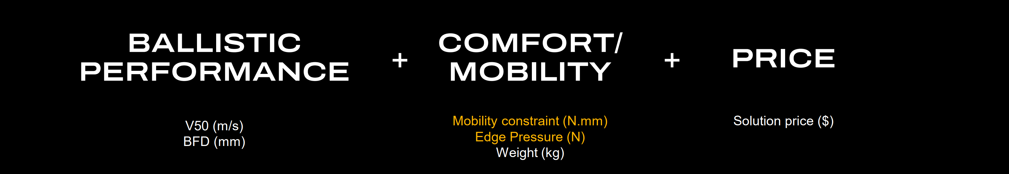 To maximize combination of materials to reduce pains and mobility constraints while meeting required ballistic performance
