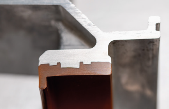 A second solution with a unique approach was recently developed. The high temperature resistance of Vespel® polyimide makes it suitable as an insert for an aluminum die-casting process. As it does not have a melting point, it can withstand the high processing temperatures of up to 650°C for the brief period in the casting process. By placing a Vespel® insert into the mold prior to die-casting, an electric insulating barrier between the e-motor housing and the bearing is generated. The tight bearing seat tolerances are obtained by machining afterwards – a process that is required anyway. Together with the aluminum die caster Aluwag AG from Switzerland the feasibility of the concept was successfully demonstrated. Aluminum housings with 90-mm ring shaped Vespel® inserts have been produced. The crosscut in FIGURE 6 shows the very smooth interface between Vespel® PI and aluminum.