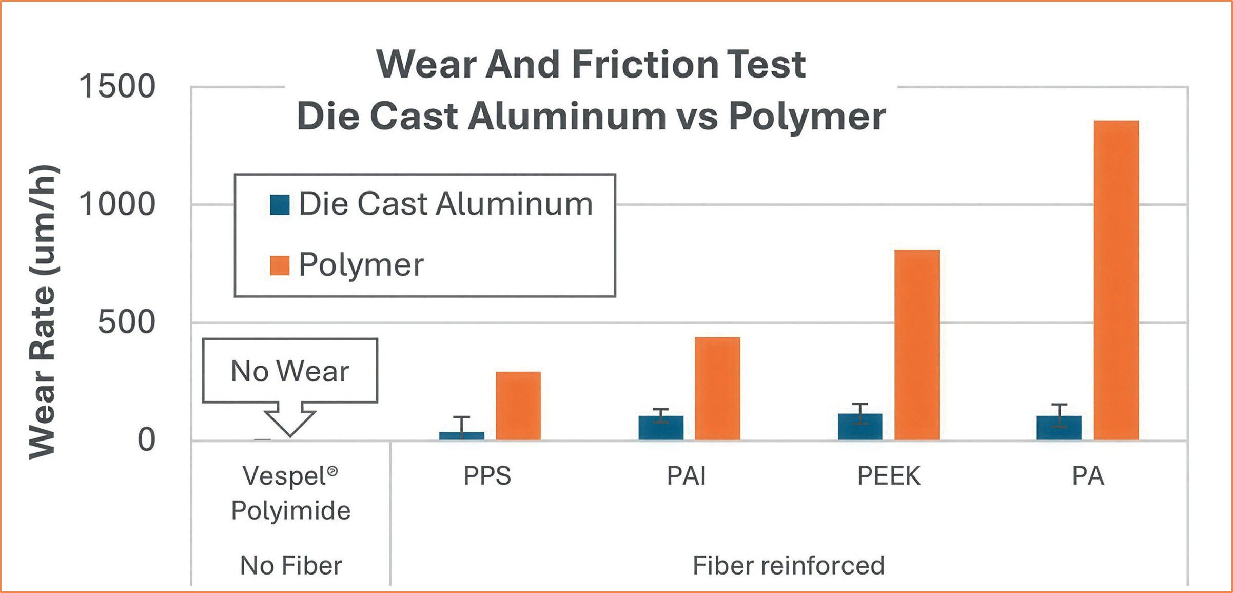 FIGURE 3 Wear performance of Vespel® polyimide vs polymeric solution against die cast aluminum