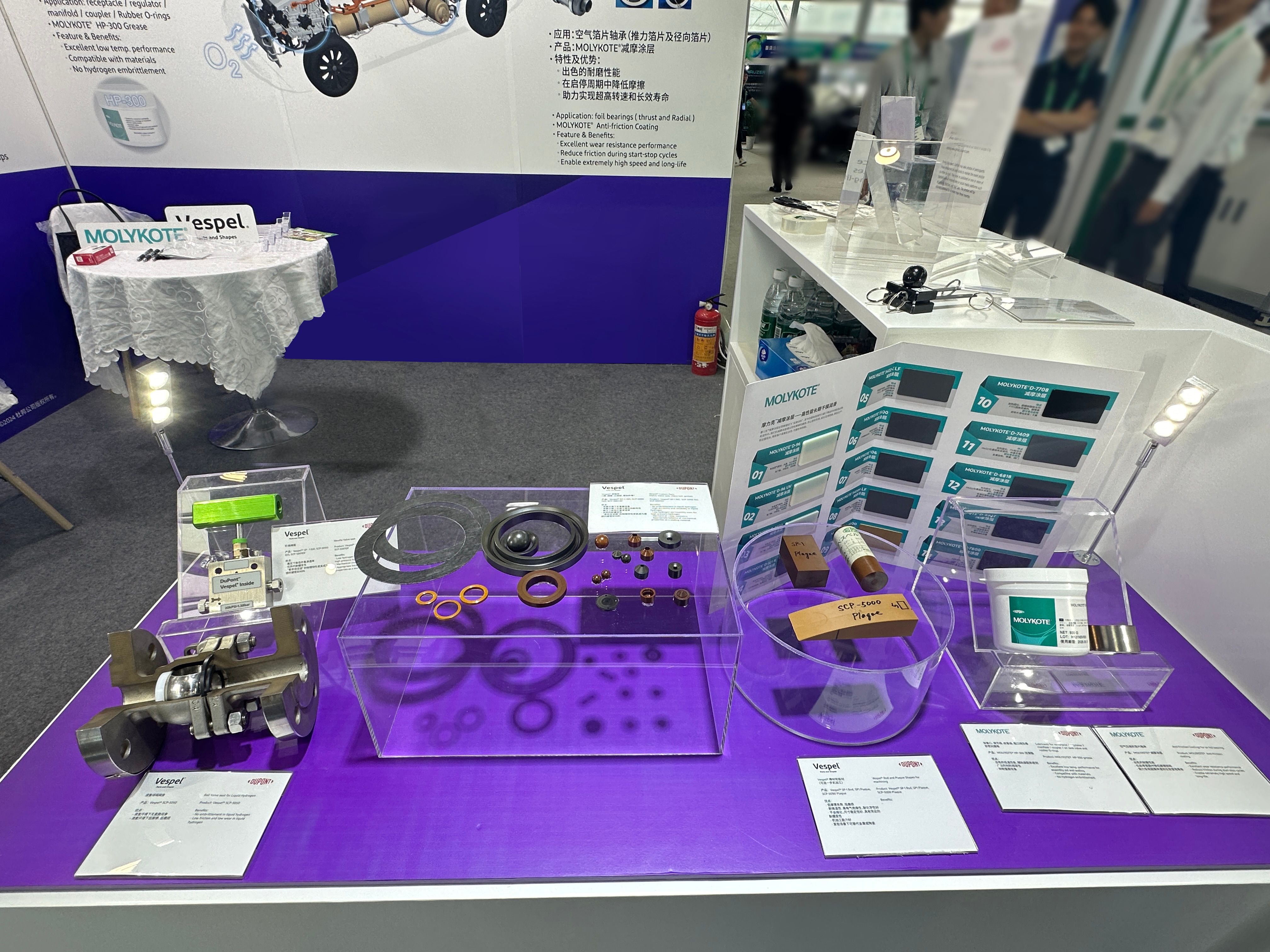 The DuPont team will also highlight some applications of MOLYKOTE® Specialty lubricant in hydrogen industry at the exhibition. MOLYKOTE® HP-300 Grease is ideal to lubricate seals of valves used along hydrogen pipes, as its lubrication capability and inertness against hydrogen reduce the risk of leakages caused by improper manufacturing or assembly. The high wearing resistance and low COF features of MOLYKOTE® Anti-Friction Coating supports air foil bearings of fuel cell electric air turbo compressor to achieve extremely high speed but also high reliability and durability due to extremely low frictional losses during the start-stop cycles.