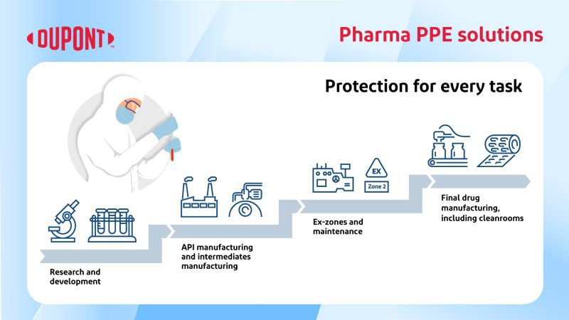 One of the areas in which safety and health are of paramount importance is in cleanrooms and controlled environments. The DuPont cleanroom clothing portfolio offers a comprehensive selection of single-use cleanroom garments and accessories designed for use in pharmaceutical, medical device, biotech and electronic settings that require high standards for particle and microbiological contamination control.