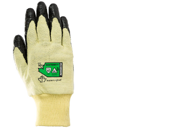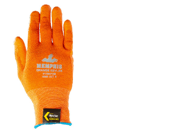 Welding and fabrication glove features Durahide™ Boar leather shell, liner made with 100% Kevlar® with Kevlar® thread seams and patented rollover fingertip construction. The glove provides ANSI/ISEA 105:2016 Level A4 cut, Level 4 abrasion and Level 3 puncture protection combined with ANSI/ISEA Level 2 contact heat resistance