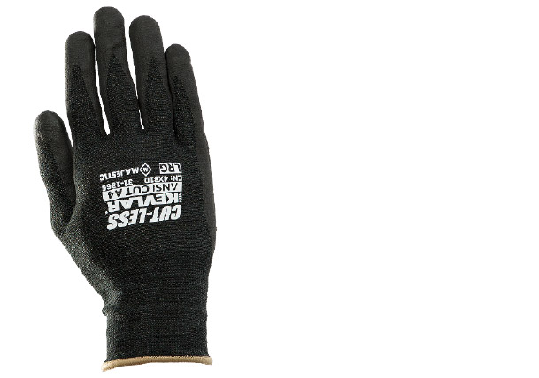 Driver-style work glove features premium grain goatskin hide shell, a palm with Kevlar® blend and thermoplastic rubber impact back of hand protection with ANSI/ISEA 105:2016 Level A9 cut, Level 4 abrasion and Level 5 puncture resistance with ANSI/ISEA 105 Level 3 contact heat and ANSI/ISEA 138 Level 1 impact protection.