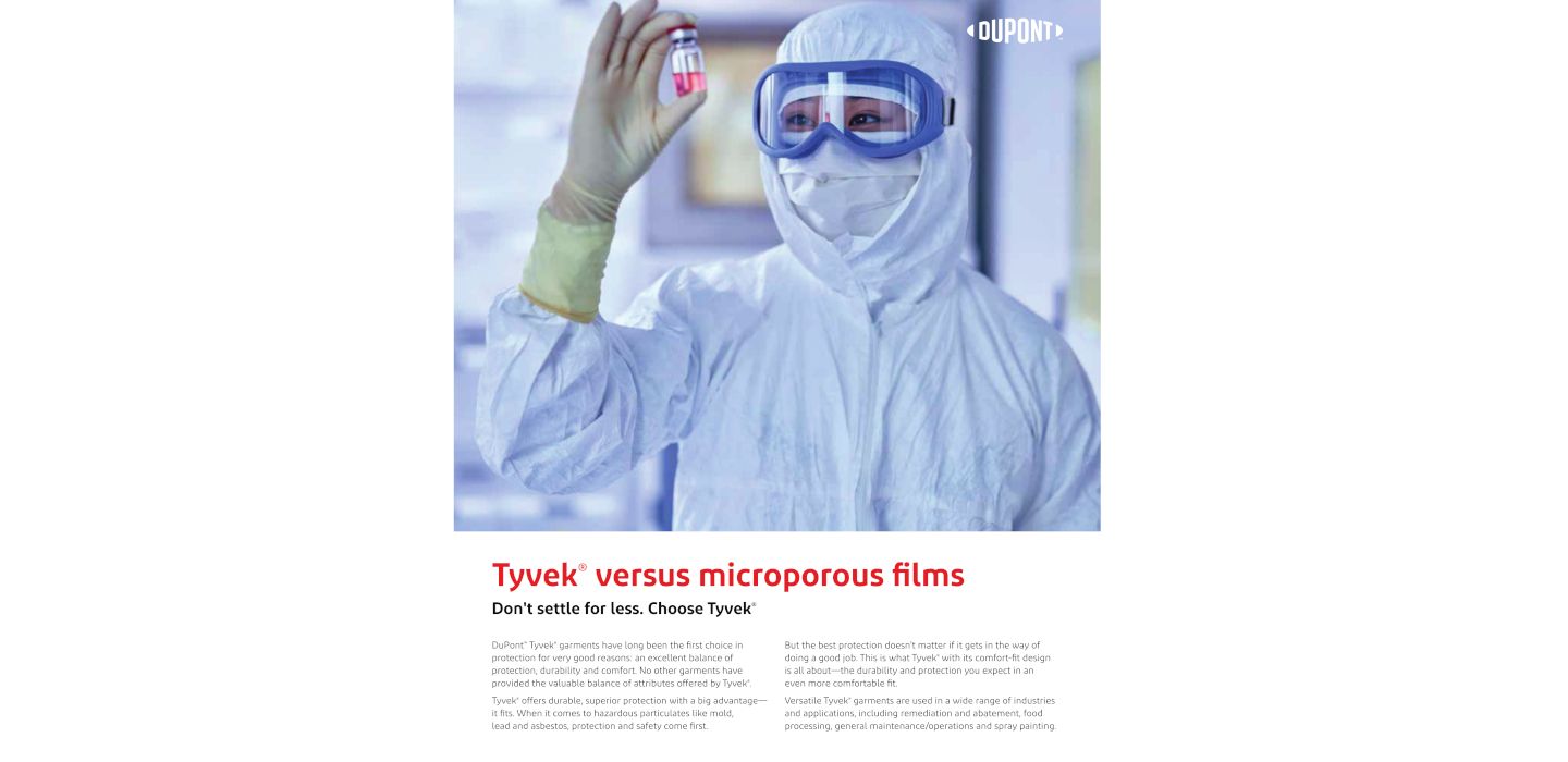 Tyvek® fabric is more breathable than microporous film fabrics, significantly enhancing comfort during wear.