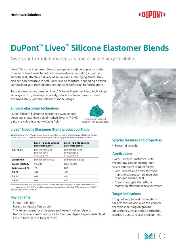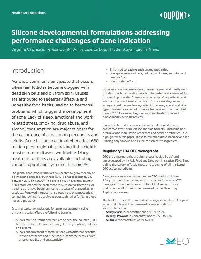 Non-comedogenic and non-acnegenic silicone materials from DuPont™ Liveo™ are ingredients of choice for acne management.