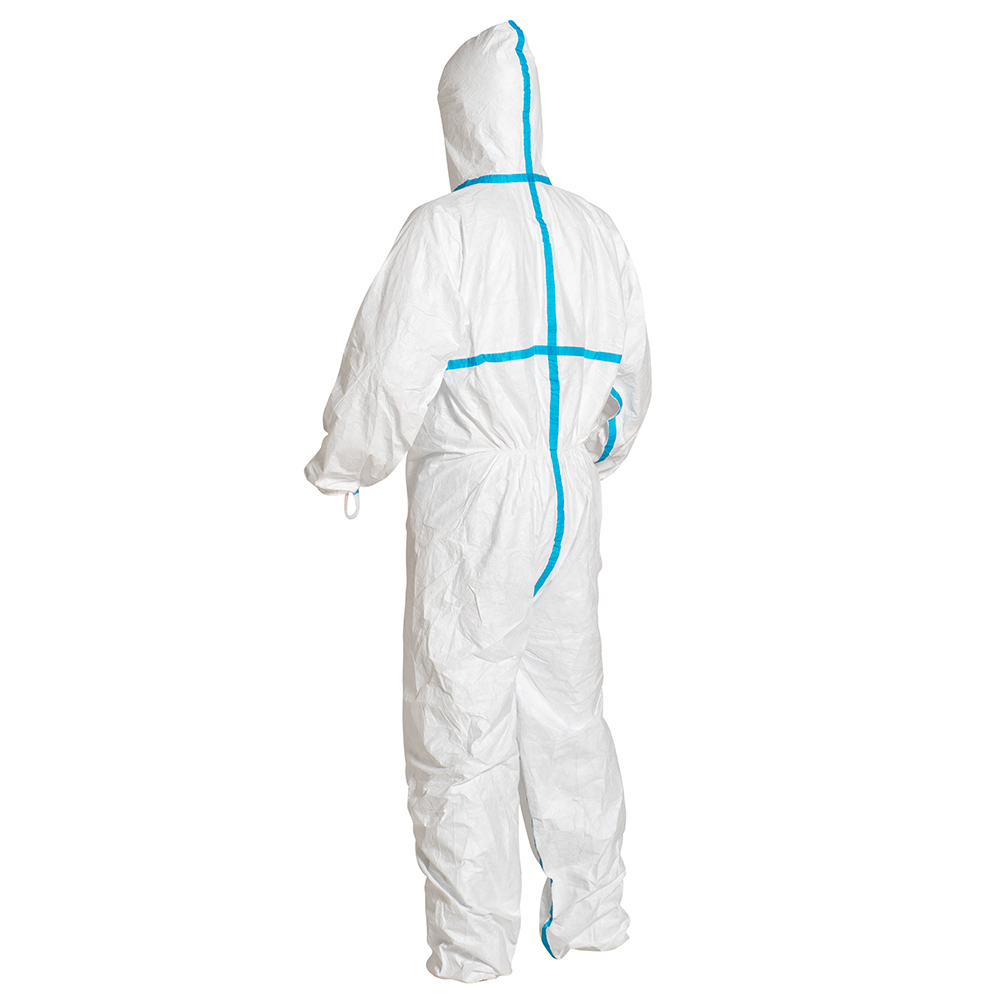 Tyvek® 600 and Tyvek® 500 garments use a special type of Tyvek® fabric which has different physical properties and improved chemical resistance properties when compared to fabric used in standard Tyvek® 400 garments. Additionally, the seams used in standard Tyvek® 400 garments are different than the seams for Tyvek® 600 and Tyvek® 500 garments. Tyvek® 600 garments offer seams that are sewn and then taped and Tyvek® 500 garments offer external sewn seams, where the seam thread is visible on the outside of the garment. Both of these seam designs, when coupled with the enhanced fabric, offer improved overall garment system protection levels. These fabric and seam differences along with other enhanced garment design elements represent the key differences between Tyvek® 600 and Tyvek® 500 garments versus standard Tyvek® 400 garments. Because of these enhancements, Tyvek® 600 and Tyvek® 500 garments are also CE certified. Tyvek® 600 is CE certified to Types 4, 5 & 6. Tyvek® 500 is CE certified to Types 5 & 6.